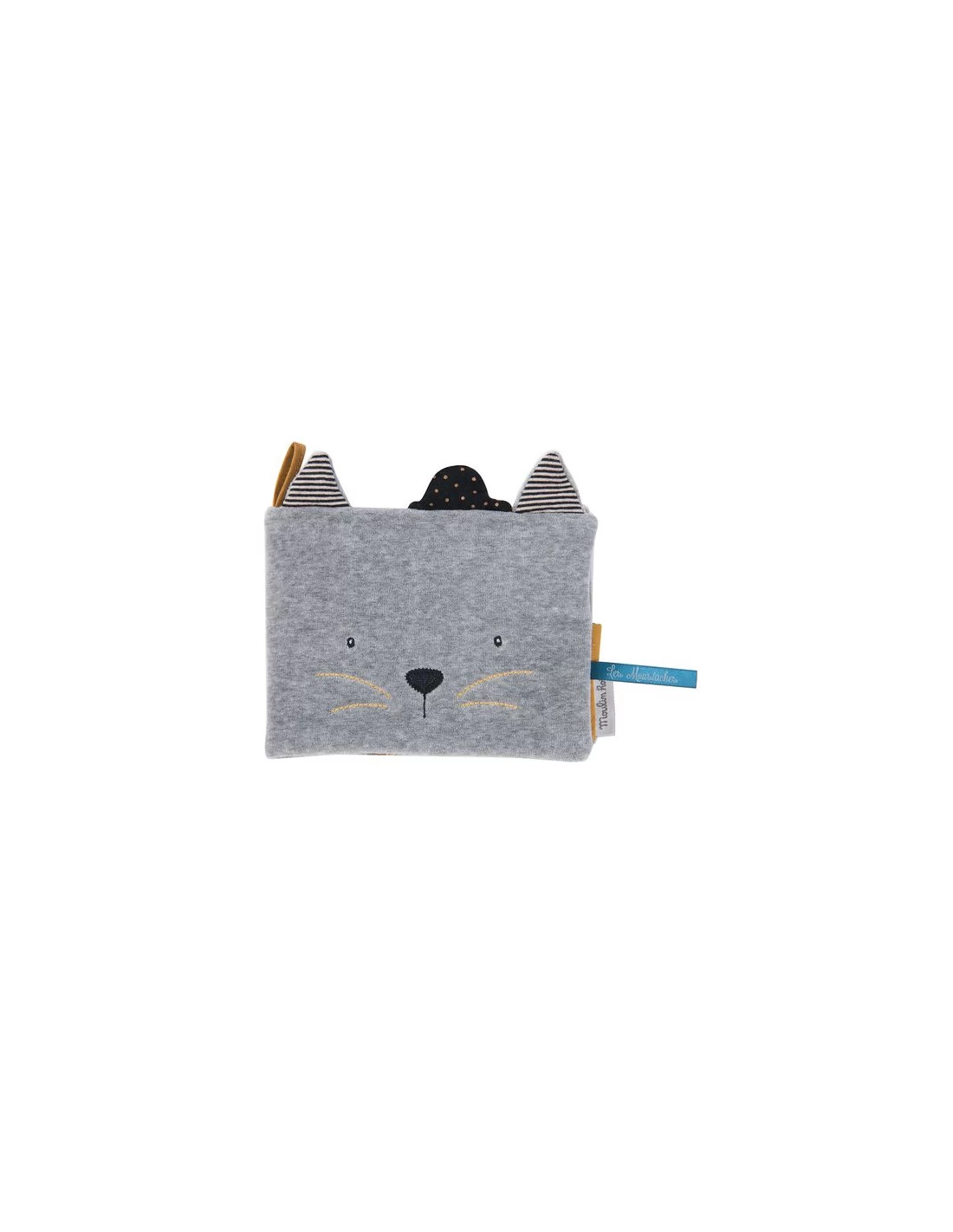 Découvrez l’album photo textile de la collection Les moustaches de Moulin Roty, un album photo à la douce couverture en velours éponge représentant le chat Fernand de la collection. Un album en tissu avec deux oreilles, des moustaches et un chapeau à pois qui se ferme par velcro. Un album que votre bébé pourra regarder et reconnaître les photos de lui ou de sa famille.