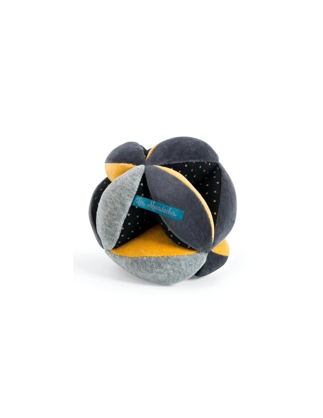 Découvrez la balle sensorielle de la collection les moustaches de Moulin Roty, une balle de préhension qui offre des côtés de couleurs et matières différentes pour stimuler la vue et le toucher. Bébé y glissera ses petits doigts pour apprendre à saisir et secouer les objets… il entendra alors le grelot chanter!