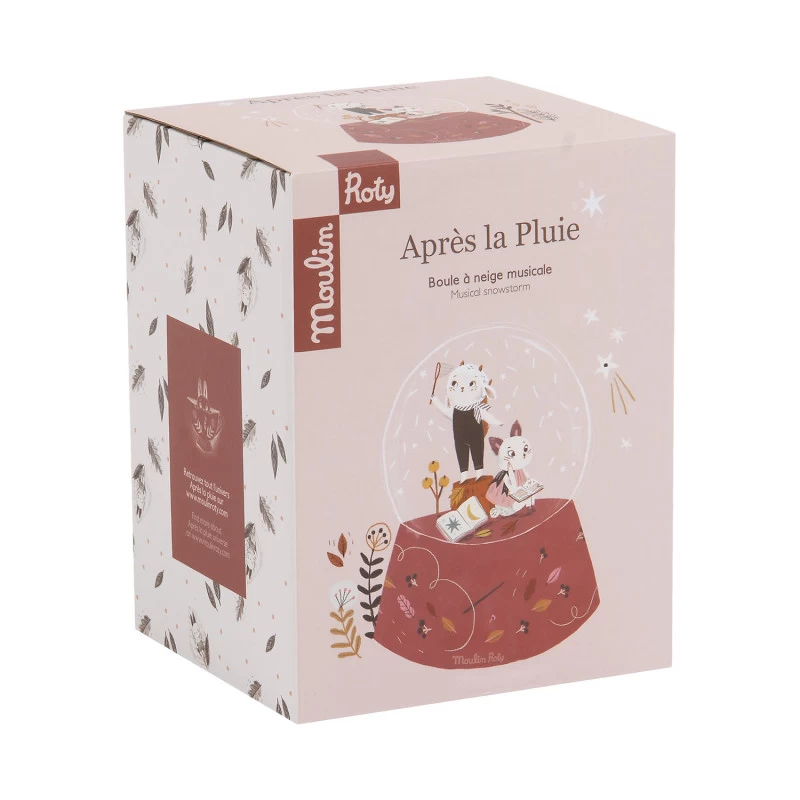 En plus de décorer magnifiquement la chambre de votre petite fille, la boule à neige musicale Moulin Roty Après la pluie cache sous son socle une clé à remonter pour entendre une jolie berceuse qui saura aider votre enfant à trouver le sommeil.