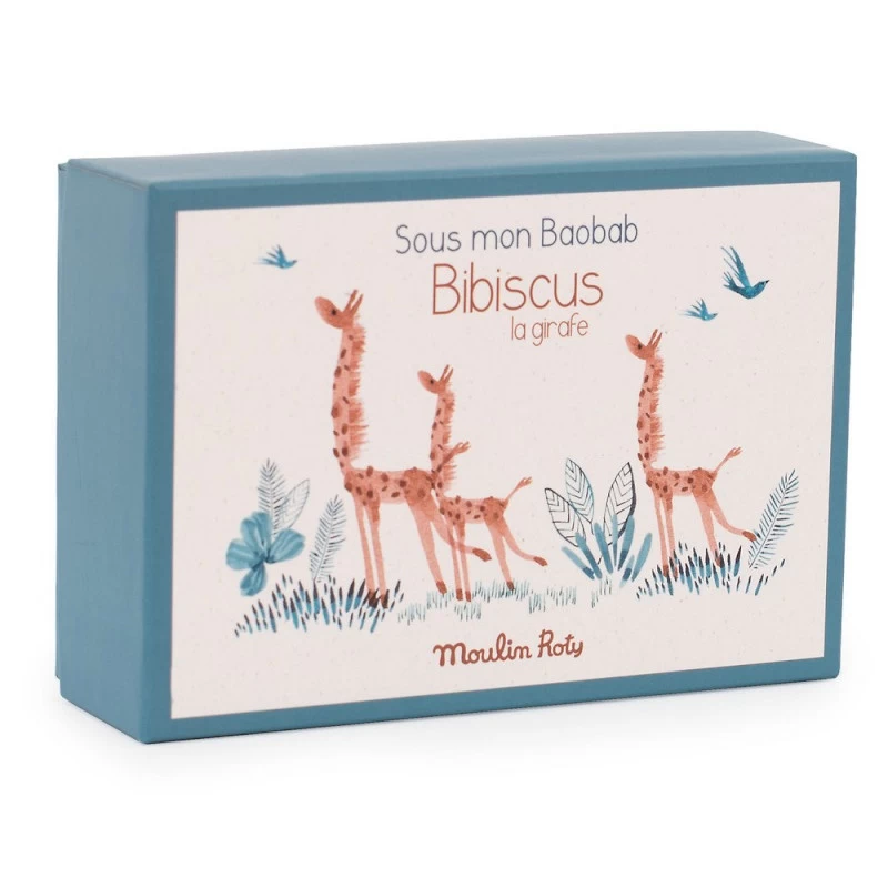 Entrez dans le monde tout doux de la collection Moulin Roty : « Sous mon baobab ». Ce superbe thème met en scène trois compagnons : Paprika le lion, Bibiscus la girafe et Bergamote l’éléphant qui évoluent avec tendresse dans la savane accompagnés d’un beau crocodile et d’un petit oiseau malicieux !