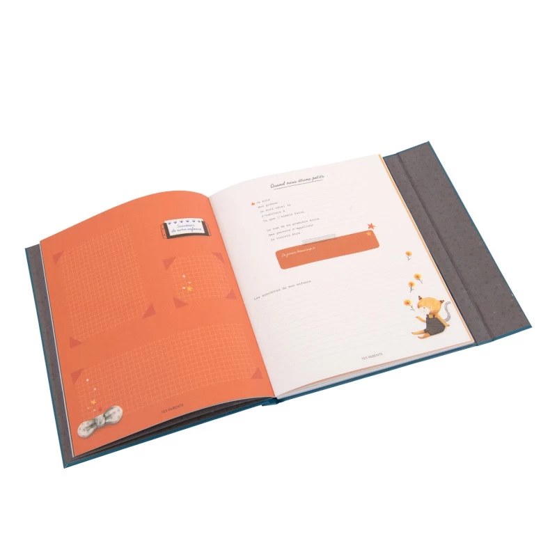 Prenez le temps de remplir régulièrement ce sublime livre de naissance Moulin Roty Les moustaches, et il deviendra une mine de souvenirs, pour ne rien oublier des premiers instants partagés avec votre bout de chou, dès sa naissance et jusqu’à ses 6 ans. Tout au long des 80 pages illustrées de ravissants personnages de la collection, vous y inscrivez vos mots et collez vos photos préférées.