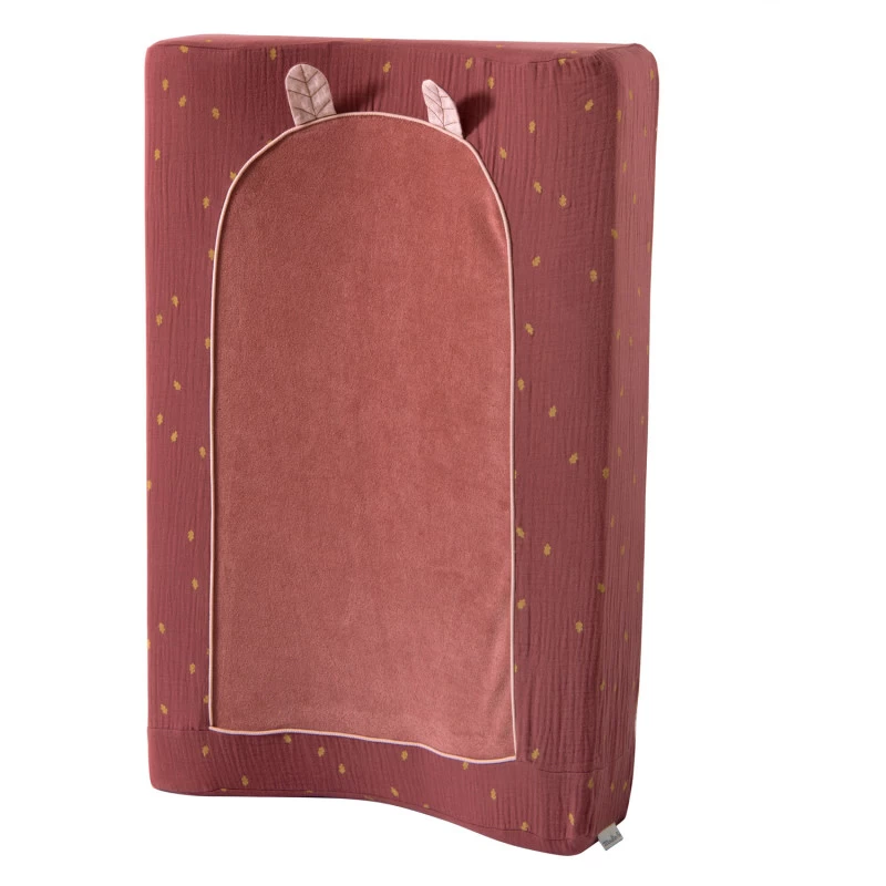 Le matelas à langer Moulin Roty Après la pluie est livrée avec une housse amovible et lavable, réalisée en lange et tissu éponge, dans de jolies teintes, rose et terracotta. Sa taille de 68 x 44 cm lui permet de s’installer facilement sur la plupart des commodes avec plan ou des tables à langer, pour offrir à votre bébé des moments de toilette doux et confortables.
