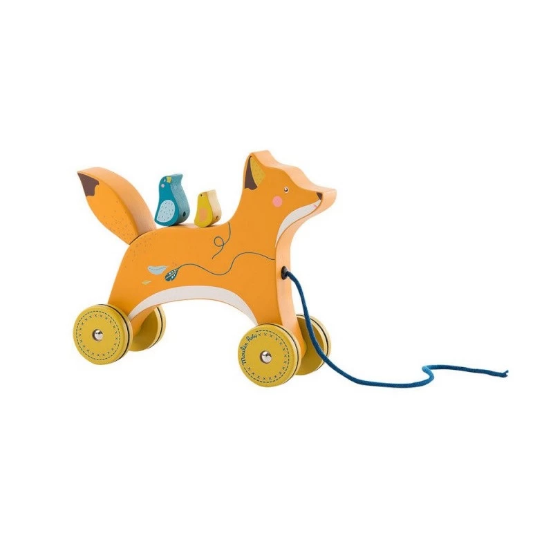 Un joli renard en bois à tirer pour emmener partout avec soi, avec deux oiseaux compagnons posés sur son dos et un grelot autour de son cou qui fait du bruit quand il s’agite. Les couleurs et illustrations raffinées sont à l’image de la gamme pour une touche de fantaisie. Ce renard d’activité à tirer Le voyage d’Olga est idéal pour inciter bébé à la marche.