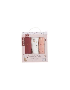 Imaginés par Lucile Michieli, les personnages d’Après la pluie incarnent de doux esprits, venus se réfugier dans la chambre après une balade dans les sous-bois parfumés… Inspirés des souvenirs de son enfance et de sa sensibilité aux dessins japonais, elle offre des compagnons de rêverie et de jeu pour les enfants. Ils sont habillés de matières naturelles, en lin et lange de coton organique, avec des grandes oreilles en polaire toute douce. De petits personnages aux minois brodés d’un nez pointu, résolument poétiques, qui laissent imaginer mille et une histoires à se raconter au coin du lit…Un superbe cadeau de naissance qui vous fera craquer.