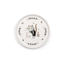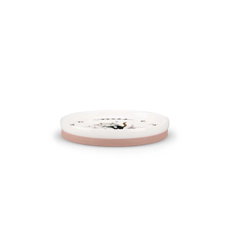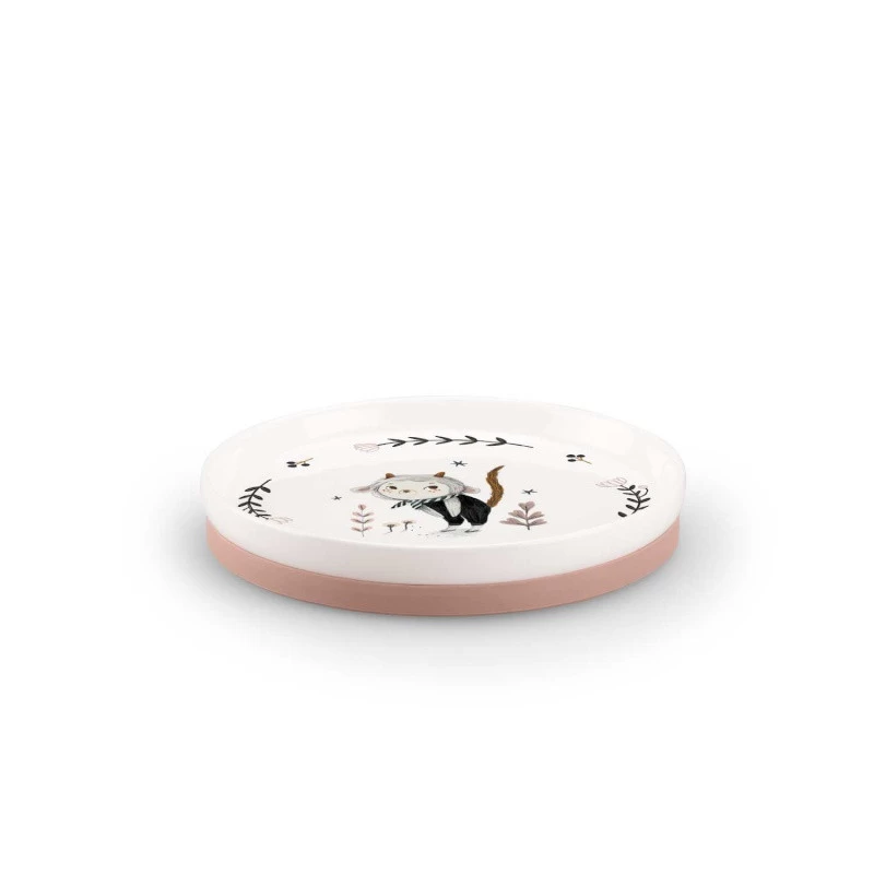 L’ensemble de vaisselle proposé par Moulin Roty comprend un bol, une tasse facile à attraper par ses anses et une assiette plate. Chaque élément est réalisé en porcelaine, décoré par de délicats motifs fleuris et par les tendres personnages de la collection Après la pluie. De plus, une « chaussette » en silicone, amovible et anti-dérapante est prévue pour éviter de tout renverser !