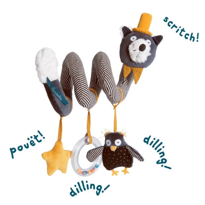 La spirale d’activités Les Moustaches Moulin Roty est un compagnon vraiment sympa, à offrir à votre nourrisson, ou à glisser dans votre liste de naissance.