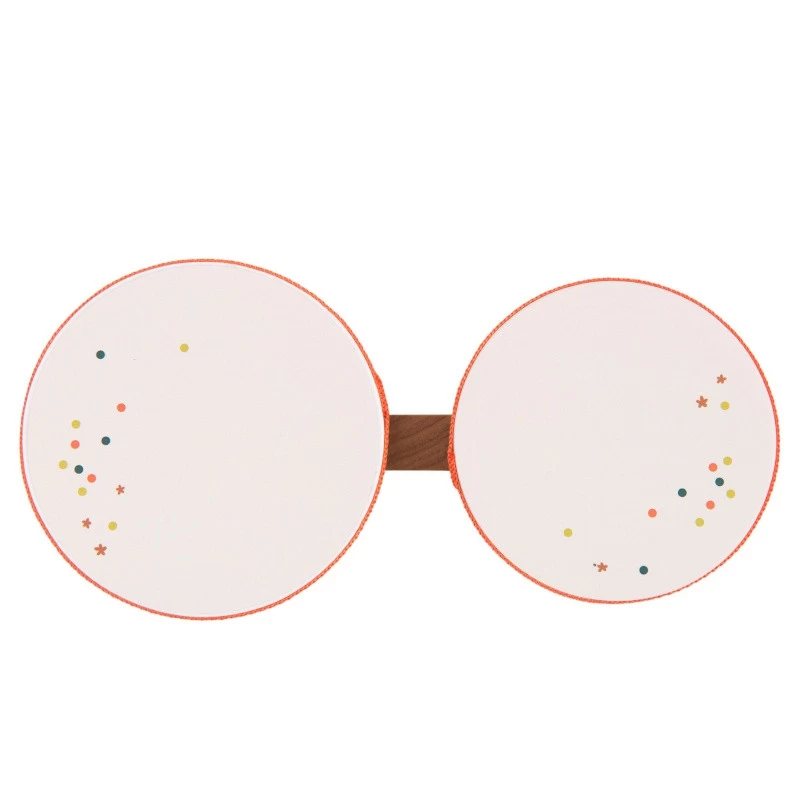 Réalisé en bois, le tambour bongo Dans la jungle est en fait composé de deux cylindres reliés entre eux. Ils sont hauts en couleur, et joliment illustrés par la présence des oiseaux chantants de la collection Moulin Roty.